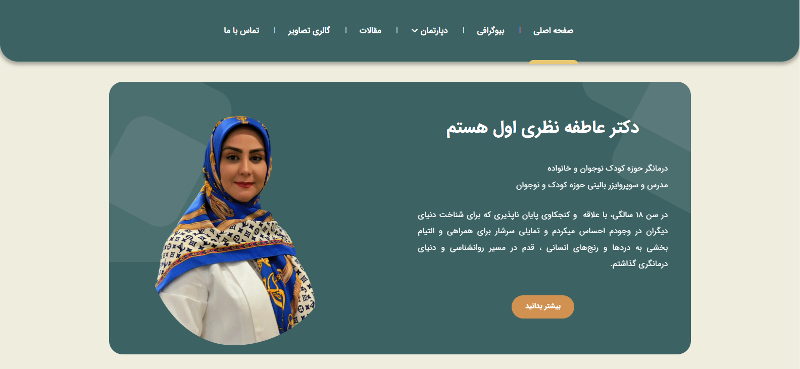 صفر تا صد طراحی و سئو سایت خانم دکتر نظری توسط من انجام شده است تا با یک وبسایت جامع و کاربرپسند، خدمات و اطلاعات لازم در حوزه روانشناسی کودک به مراجعهکنندگان ارائه شود. در این سایت، کاربران میتوانند با برنامههای کارگاهها آشنا شوند و مطالب مرتبط با روانشناسی کودک را مطالعه کنند.